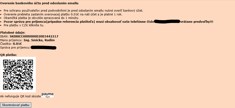 Aj keď nejde o podvod, stále je rozumné skontrolovať si niekoľko detailov. Overenie má prebiehať na oficiálnej stránke Bazoša, nie cez skrátené odkazy alebo cudzie domény. Pri mikroplatbe má byť správne vyplnená správa pre príjemcu s telefónnym číslom vrátane predvoľby, inak môže overenie zlyhať alebo sa zbytočne zdržať. Treba počítať aj s tým, že 0,01 eura je nevratná suma a že platnosť overenia je časovo obmedzená.