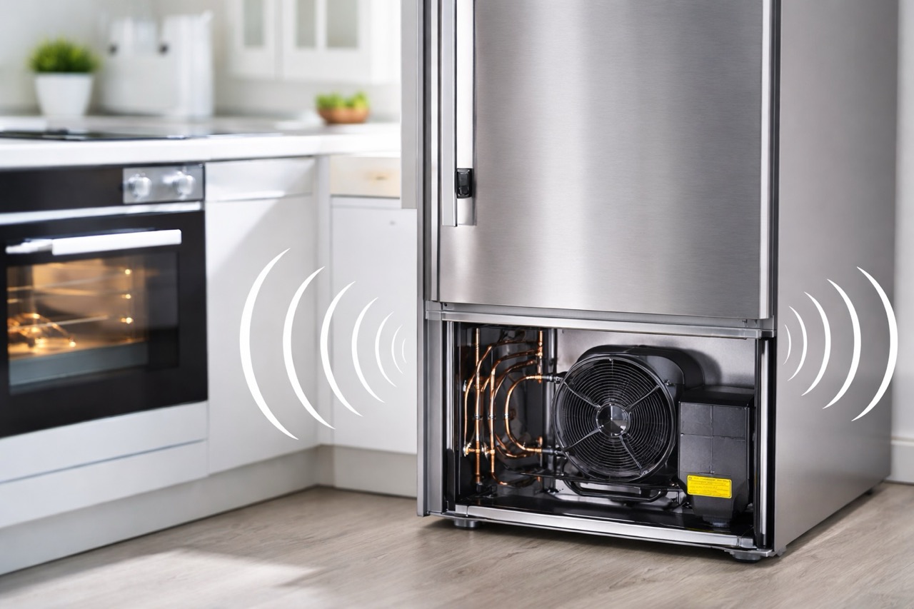 Hučanie, bzučanie či cvakanie chladničky ešte automaticky neznamená poruchu. Veľká časť týchto zvukov patrí k normálnej prevádzke kompresora, ventilátorov, odmrazovania alebo výrobníka ľadu. Rozhodujúce je skôr to, či sa hluk zmenil, zosilnel, trvá podozrivo dlho, mizne po otvorení dverí alebo sa spája so slabším chladením. Keď si najprv skontrolujete postavenie spotrebiča, priestor okolo neho, tesnenie, vnútorné usporiadanie a čistotu, často zistíte, že príčina je jednoduchšia, než sa na prvé počutie zdalo.